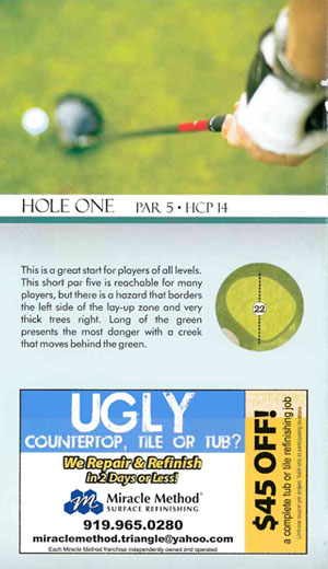 During a course renovation in 2006, Champion Bermuda turf grass was implemented on the greens and 5 fairways were remodeled. Over the course of 2 years, 600 trees were removed for further growth and easy visibility. Now, the course is much more playable to the average golfer, and along with some added tee boxes the low to scratch players are extremely tested throughout the course, especially the final 6 holes. The par 5 18th hole is the signature hole measuring 580 yards with a 2nd shot for the brave, or 3rd shot over water.